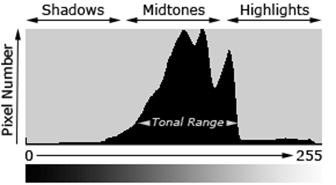 히스토그램은 같은 명암값의 빈도 수Counting the number of pixels with the same brightness를 나타낸 것이다.