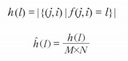 h히스토그램(l) = h(l) / (MxN) // 정규화