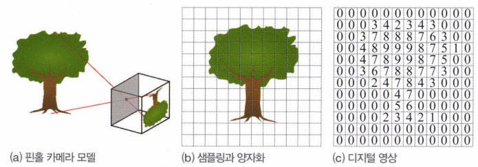 CCD 센서(빛의 세기를 이미지로 바꿔주는 이미지 센서)가 영상을 가로로 N, 세로로 M개의 점으로 샘플링한다.