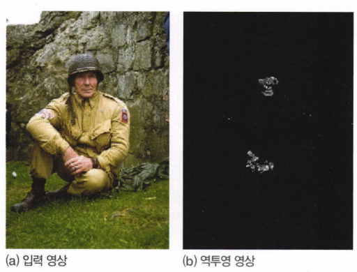 - 히스토그램 역투영histogram backprojection : 물체의 모양은 무시하고, 단순히 컬러 분포만으로 검출하는 방법.