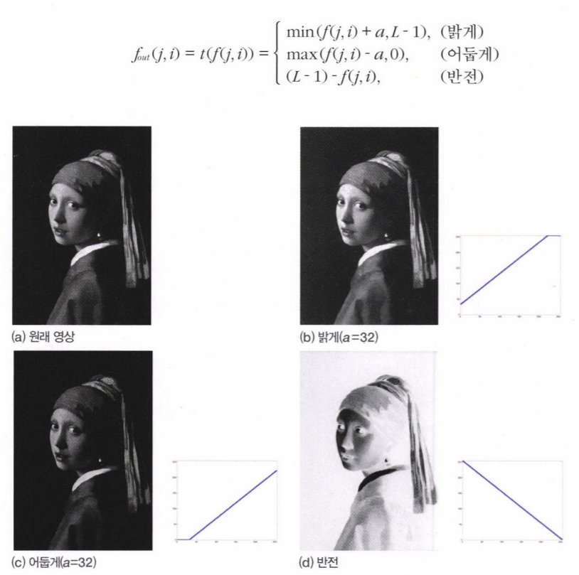 위의 두 식은 양수 a를 더해서 밝게 만들거나, 반대로 빼서 어둡게 만드는 영상이다.