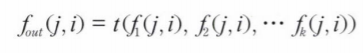 출력 영상 f에서 화소(j, i)의 값은 k개의 입력 영상에서 같은 위치에 존재하는 화소의 값에 따라 정해진다.