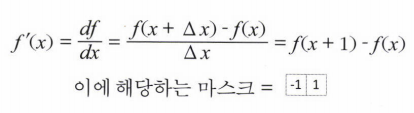 이 식은 마스크 [-1][1]로 영상 f를 컨볼루션하는 것과 같다.