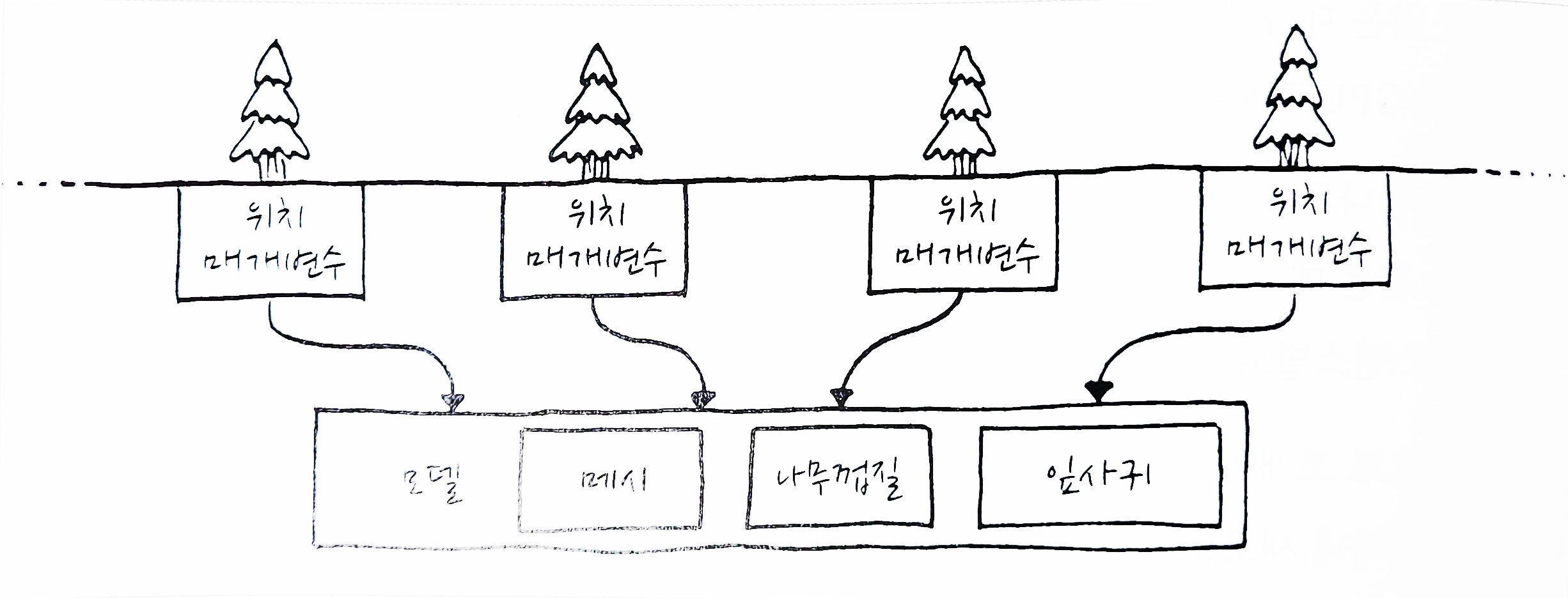 - 각각의 나무가 다르게 보이도록 크기와 음영 같은 값을 조절할 수 있는 매개변수
