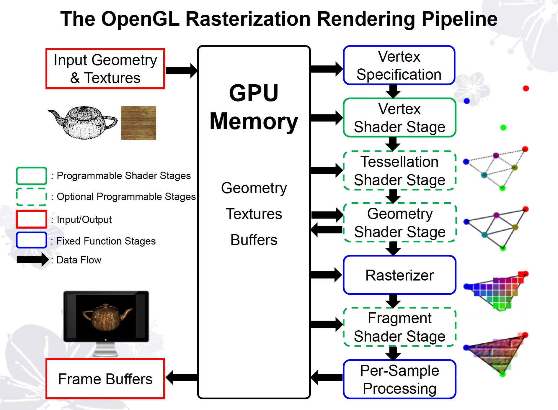 OpenGL에서의 렌더링 파이프라인은 아래와 같다.