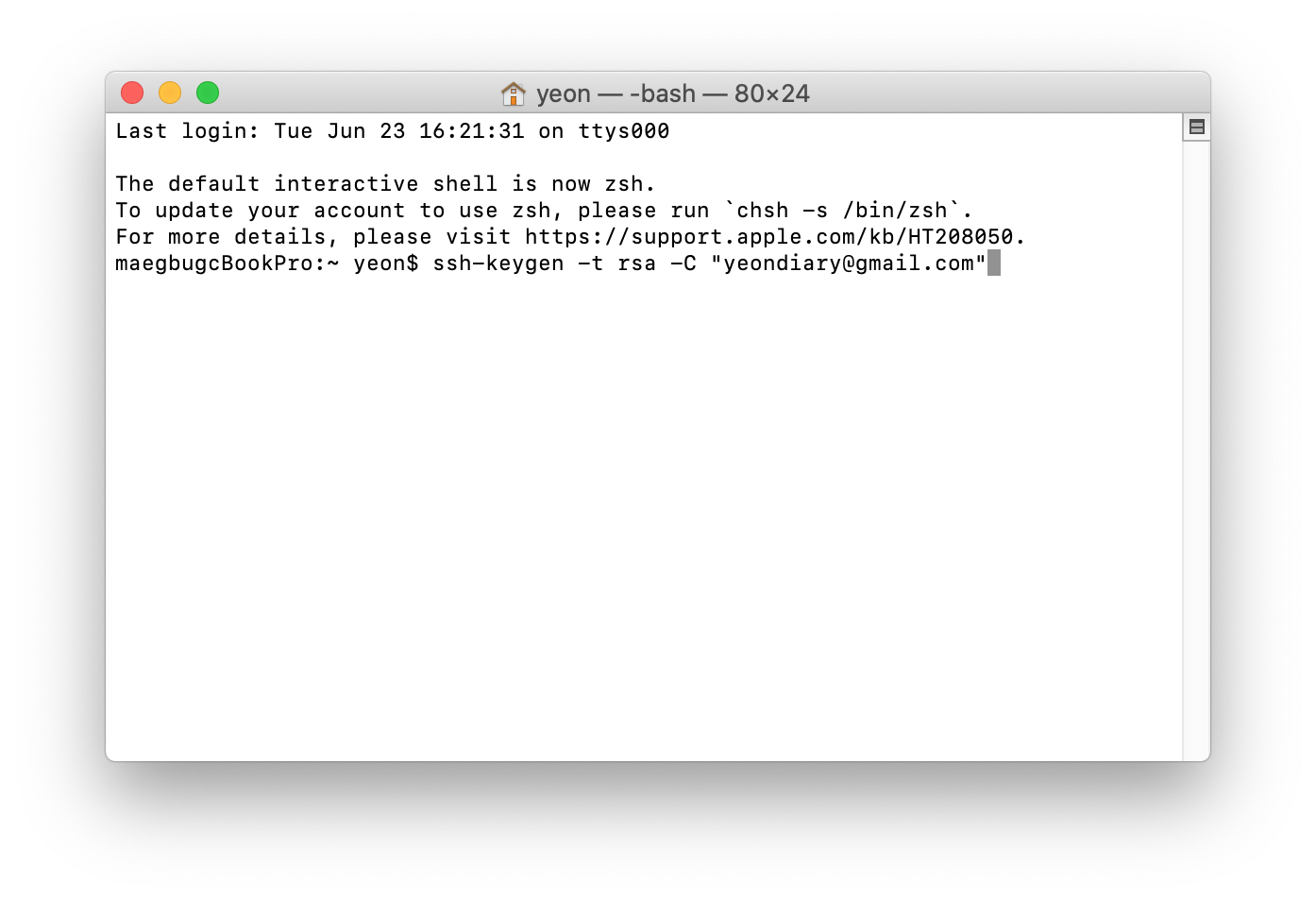 이후로 Enter > 비밀번호 입력 > 비밀번호 재 입력을 하면 public key가 생성된다.
