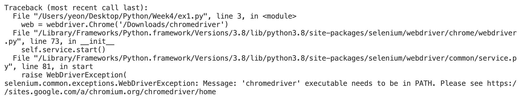 web = webdriver.Chrome(executable_path= r'/Users/yeon/Downloads/chromedriver')
