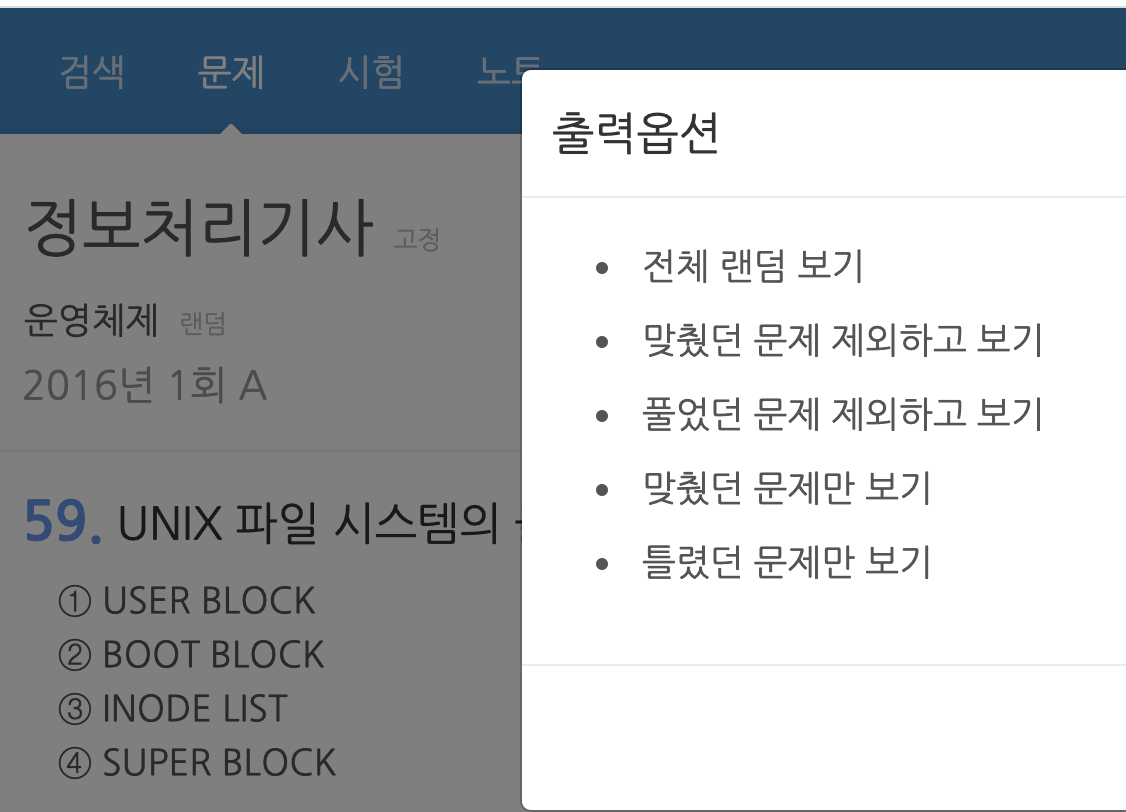 특히 과목별로 고정해두고 맞췄던 문제를 제외하고 보면서 (위의 사진처럼 톱니바퀴 버튼을 누르면 옵션이 나온다) 한 3바퀴를 돌렸었는데 좋았다.