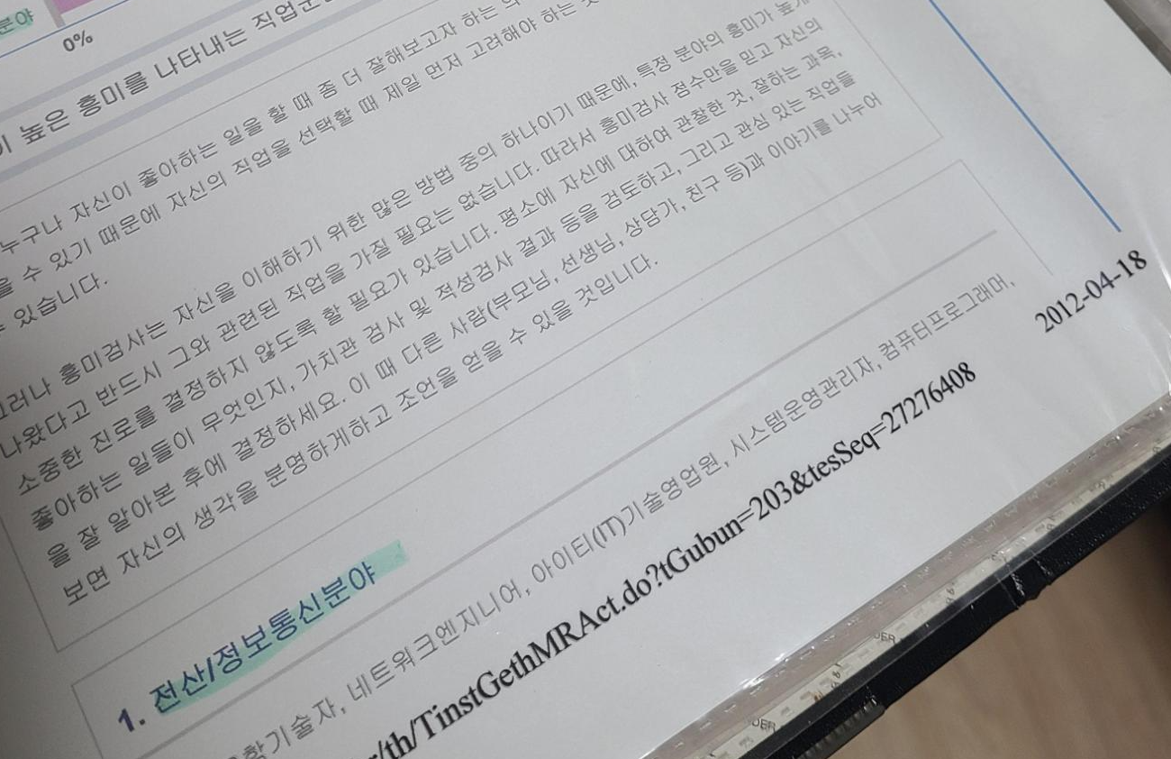 생활기록부를 찾고싶었는데 이런 적성검사 뿐이긴 하다... 옛날에 했던 적성검사는 전부 IT계열이 나왔었다.